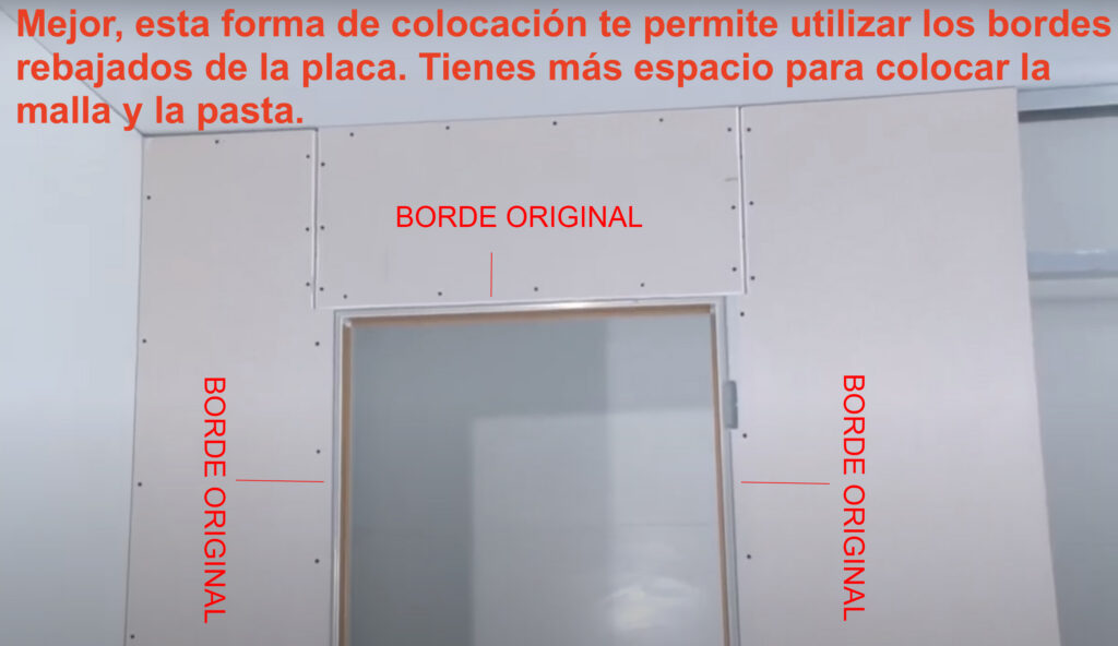 La colocación de las placas debe evitar que las juntas coincidan exactamente en las esquinas del hueco, ya que esto provoca fisuras con el tiempo.