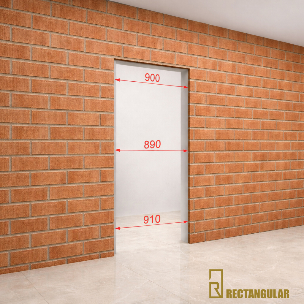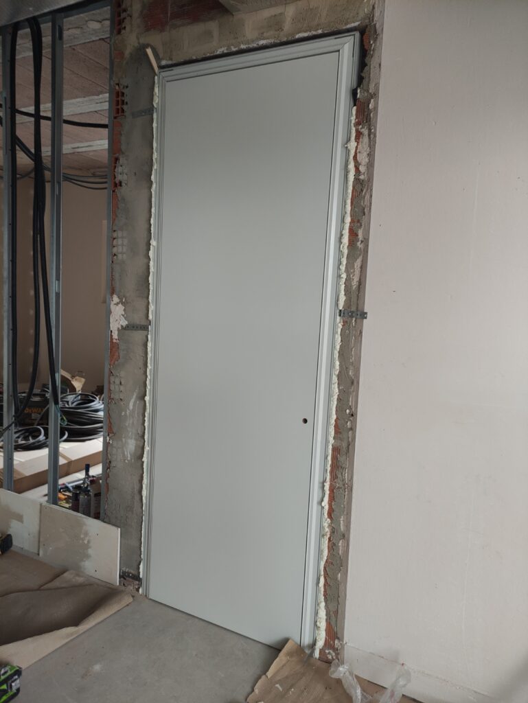 En nuestras puertas no es necesario instalar un premarco de madera. Si ya existe uno, es recomendable retirarlo, ya que cuando se enluce yeso sobre un premarco de madera en un tabique de ladrillo, con el tiempo pueden aparecer grietas en la unión entre ambos materiales.