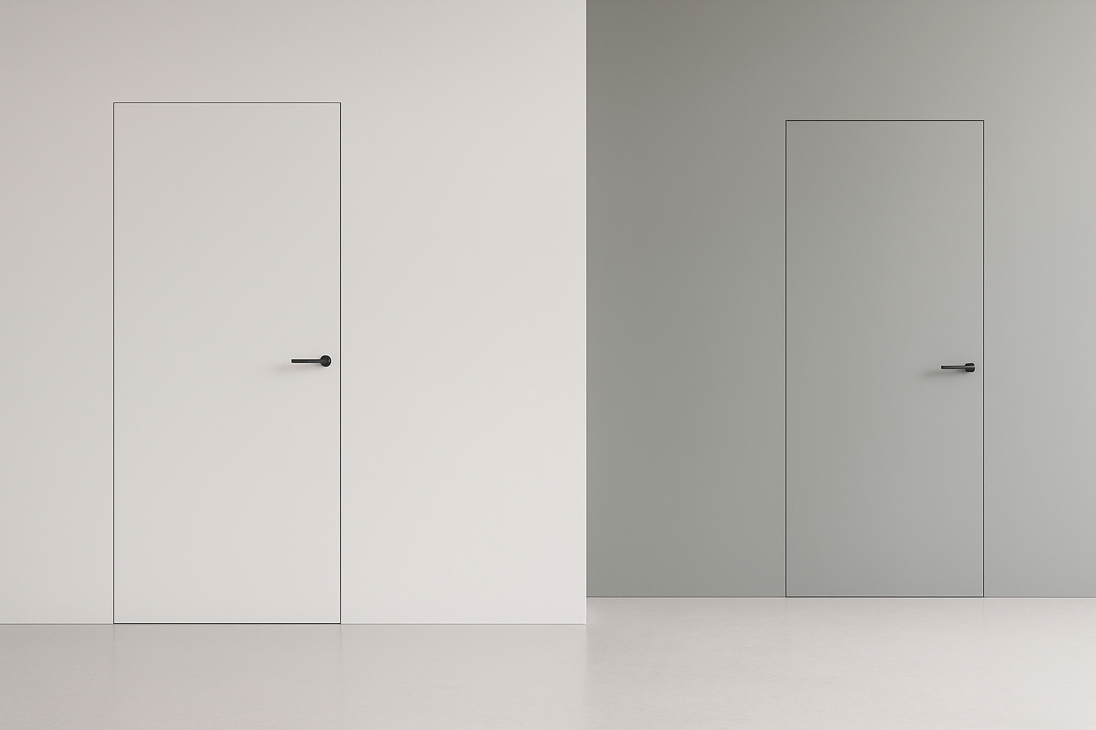 La puerta oculta sin marco’40 llamada también puerta enrasada, invisible, o puerta con marco oculto se caracteriza por una estructura rígida y duradera de una hoja con un espesor de 40 mm. y una altura máxima de 2600mm. Se monta sobre un marco de aluminio que se queda oculto después de montaje, esta disponible en versión de empujar y tirar, destinado a su instalación en tabiques tanto de obra tradicional (ladrillo hueco) como de cartón yeso de 12,5 mm. El marco y la hoja están adaptados para ser pintados con pinturas de pared o empapelados.